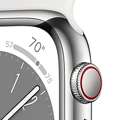 Apple Watch Series 8 [GPS + Cellular 45mm] Smart Watch w/Silver Stainless Steel Case with White Sport Band – S/M…