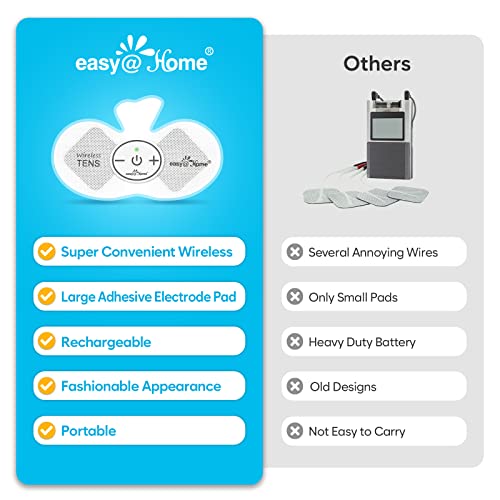 Easy@Home Rechargeable Compact Wireless TENS Unit – 510K Cleared, FSA Eligible Electric EMS Muscle Stimulator Pain…