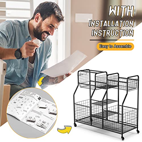 EASY TO ASSEMBLE: The sports equipment organizer comes with clear instruction guide to help you put it together. Step by step guide for effortless installation to help storage sports equipment easily and quickly.