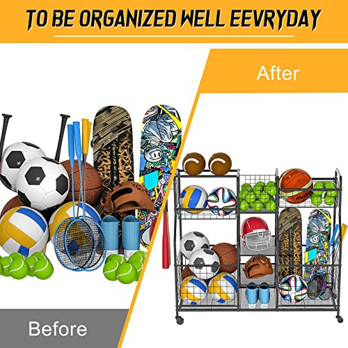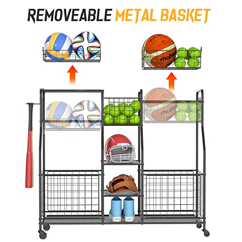 Garage Sports Equipment Organizer, Ball Storage Rack, Garage Organizer System, Indoor/Outdoor Sports Rack, Rolling…