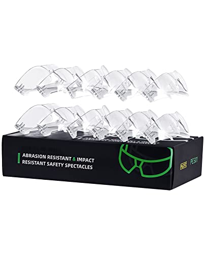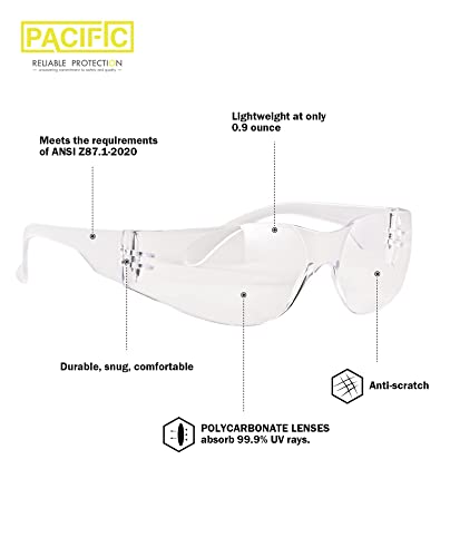 PACIFIC PPE Safety Glasses, 12 Pairs, Scratch Resistant Eyewear, Polycarbonate Impact Resistant Lens